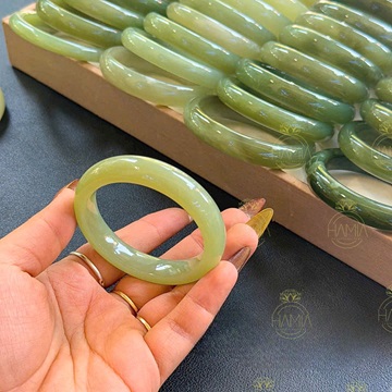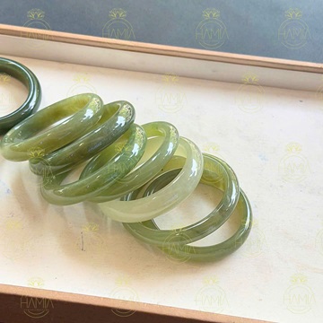 mang sắc lục dịu êm như dòng suối mùa xuân, thanh tịnh mà đầy nội lực. Mỗi chiếc vòng là một bản giao hưởng của thiên nhiên và thời gian, kết tinh từ tinh hoa ngọc ngà đất trời. Ánh ngọc xanh ẩn hiện, trong sáng nhưng ấm nồng, như ôm trọn phúc khí cho người hữu duyên sở hữu. Đeo vòng Hòa Điền không chỉ là trang sức, mà là gìn giữ một linh khí, một mạch sống an lành luôn bên cạnh.